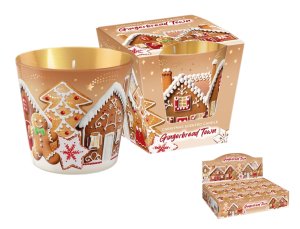 Vonná sviečka v skle s vôňou perníka a pomaranča vytvára teplú a sladko korenistú vôňu s ľahkým citrusovým nádychom.