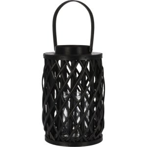 lampáš, vŕba, veľkosť: 19x19x32cm, s držadlom a skleneným valcom 10x15cm, čierna farba
