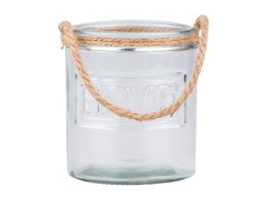 Priestrannejšia sklenená lampa s lanovým závesom, pre sviečku alebo svetelnú reťaz.