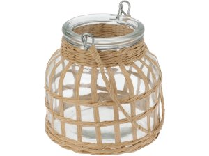 Sklenená lampáš s prúteným obalom slúži ako doplnok na osvetlenie vašej záhrady alebo domácnosti.