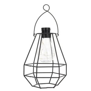 Čierna kovová drôtená lampa so závesom na sviečku - štýlový prvok pre útulnú domácu atmosféru.