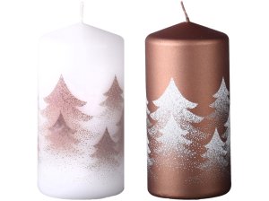 Sviečka s vôňou često narezaného jedľového dreva v mrazivom zimnom rane.