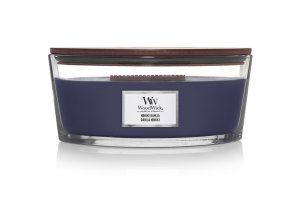 Vonná sviečka s vôňou divokej levandule, kvitnúce blízko chladných pobrežných vôd a upokojujúceho santalového dreva.