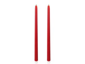Súprava dvoch kónických LED sviečok s výškou 380 mm v červenej farbe.