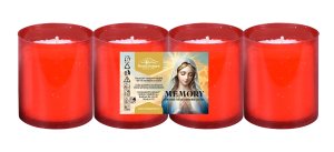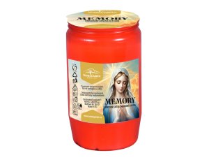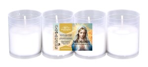 Sklenená cintorínska sviečka s vymeniteľnou parafínovou náplňou 45g, s plastovým spodkom, zaisťujúcim dobrú stabilitu skla a plastovým vrškom, ktorý chráni plameň pred zhasnutím vplyvom vetra a dažďa.