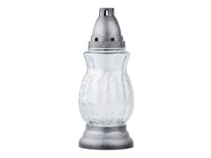 Strieborné cintorínske sklo s LED svetlom, výška 24,5 cm.