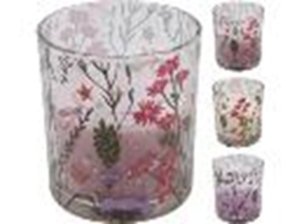 Sviečka v skle vonná kvetinový dekor v mixe farieb 90x100mm