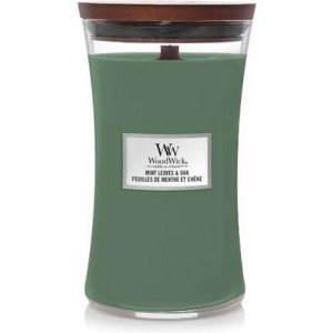 Vonná sviečka Mint Leaves & Oak v sebe ukrýva vôňu čerstvých lístkov mäty, ktorá dodáva žiarivú sviežosť drevitému akordu zeleného machu, obhoreného dubu a cyprusu.