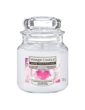 Vonná sviečka s iskrivou vôňou bublinkového kúpeľa s tónmi bielej šalvie, sladkej vody a čistého pižma.