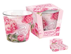 Vonná sviečka zo sójového vosku v skle s kvetinovou potlačou a darčekovým prebalom.