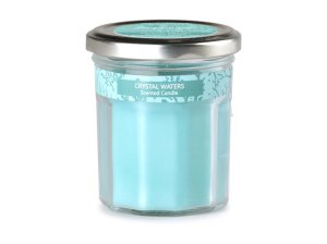 Vonná sviečka v skle. Sklenená nádoba má silné dno a pôsobí veľmi elegantne.
