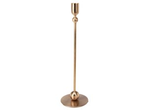 Elegantný kovový svietnik v zlatej farbe, určený pre kónickú sviečku.