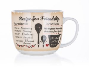 Hrnček 730 ml polievkový, RECIPE FOR FRIENDSHIP, keramický. objem: 730 ml priemer: 12,2 cm výška: 9,6 cm materiál: keramika Polievkový hrnček RECIPE FOR FRIENDSHIP je vyrobený z keramiky a je vhodný na horúce …