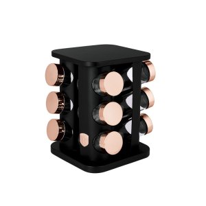 - Veľkosť: 18,5 * 18,5 * 21,5 cm - Súčasťou balenia je: - Sada obsahuje 12 ks sklenených nádob na korenie - Objem: 90 ml - Stojanček otočný o 360 ° - Farba: čierno-ružovo zlatá - Priehľadné prevedenie zaisťuje viditeľnosť …