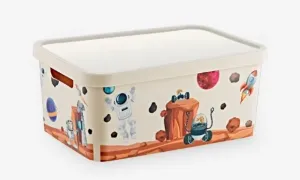Kvalitný plastový box s vekom a dekorom pre deti na ukladanie hračiek, zošitov a pod.