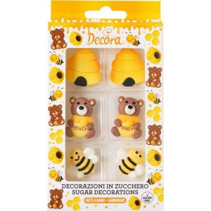 Roztomilé cukrové dekorácie Decora – Med (6 ks) v tvare včeličiek, medvedíkov a úľov.