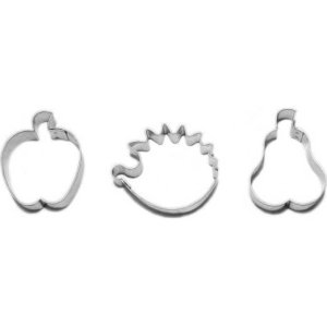 Tri vykrajovače z kvalitného pocínovaného plechu – ježko, jablko a hruška.