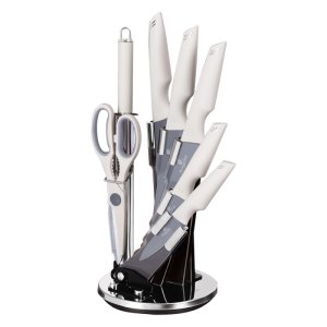• Materiál: nerezová oceľ s tmavším šedým nepriľnavým povrchom• Nôž šéfkuchársky 20 cm• Nôž na chlieb 20 cm• Nôž Santoku 17,5 cm• Nôž univerzálny 12,5 cm• Kuchynský nôž 9 cm• Nožnice, Ocieľka• 360 O akrylát