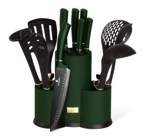- dokonale praktická sada celkom 12tich kusov kuchynského vybavenia a nožov v stojane-stojan je navrhnutý ako blok na nože so špagetovým systémom uprostred a dvoma postrannými priehradkami na kuchynské náčinie, …
