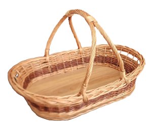 Podnos s uchom, stredný, 44 x 30 x 27 cm, lakovaný. rozmery: 44 x 30 x 27 cm materiál: prútie, lakovaný Podnos s pevným dnom a výpletom z lakového vŕbového prútia v prírodnej farbe je praktický pomocník …