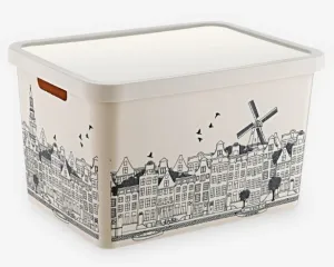 Kvalitný plastový box s vekom a dekorom pre deti na ukladanie hračiek, zošitov a pod.