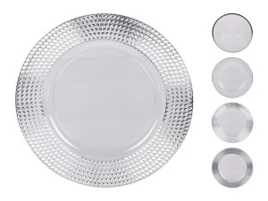 Tanier 33 cm, PH STR, mix. priemer: 33 cm materiál: plast farba: strieborná plastický okraj - mix vzorov Plastový strieborný tanier bude ozdobou na sviatočnom stole.