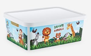 Kvalitný plastový box s vekom a dekorom pre deti na ukladanie hračiek, zošitov a pod.