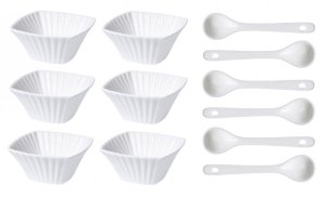 - materiál: biely porcelán - perfektný pre servírovanie predjedál, pochutín, dezertov, dipov a omáčok - rozmery jednej misky cca: 9 x 4 cm - žiaruvzdorné do 220 ° C, možno využiť aj na zapekanie v rúre - vhodné …