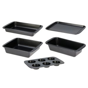 Súprava na pečenie – 5 ks, uhlíková oceľ s nepriľnavým povlakomObjavte kompletnú pečiacu sadu z kvalitnej uhlíkovej ocele s odolným nepriľnavým povlakom, ktorá vám umožní pripraviť chlieb, koláče, muffiny i cukrovinky.