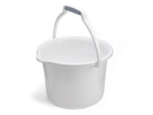 Plastové vedro so širokou základňou a výlevkou s objemom 14 litrov.