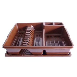 Kvalitný tvarovo dekorovaný plastový odkvapkávač na riad s podnosom.