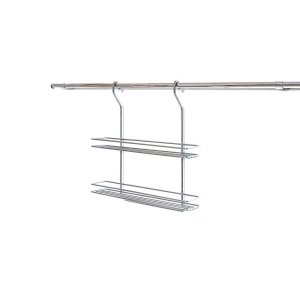 Závesná polička dvojposchodová VARIELLA o rozmere 30 x 12 x 42 cm, je vyrobená z pochrómovaného kovového drôtu, vhodná napr. na uskladnenie koreničiek.