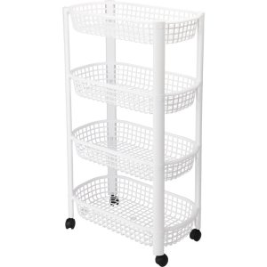Kuchynský vozík 4poschodový – 79 cm, biely• 4 otočné kolieska pre jednoduchú manipuláciu• 4 praktické košíky na uskladnenie všetkého potrebného• Materiál: odolný PP plast• Rozmery: 46,5 × 26 × 78,8 cm• Farba: bielaĽahký, …