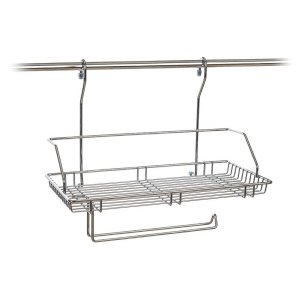 Závesná polička s držiakom na utierky VARIELLA o rozmere 40 x 34 x 21 cm, je vyrobená z pochrómovaného oceľového drôtu.