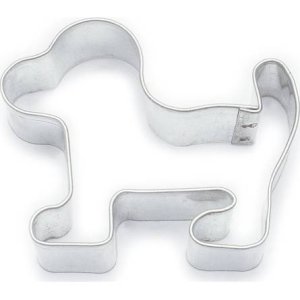 Vykrajovač na pečivo v tvare psíka s rozmermi 5,5 x 4,4 cm.