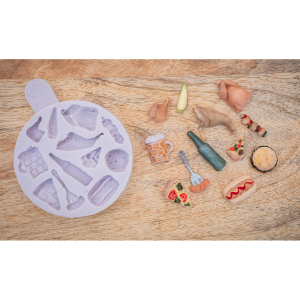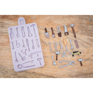 Silikónová forma „Miniatúrne náradie“ od značky Karen Davies, ideálna na vytváranie realistických cukrárskych dekorácií v tvare malých nástrojov.