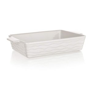 Keramická obdĺžniková zapekacia forma 33 x 21 cm CULINARIA White s praktickými držadlami pre jednoduchú manipuláciu, výška formy 6,5 cm, biela glazúra, vonkajšia strana formy má vlnkový reliéf.