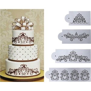 Stencil šablóna na tortu na výrobu dekorácie v podobe jedlej čipky.