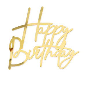 Elegantní a moderní zápich „Happy Birthday“ od značky Party Pal ve stříbrném zrcadlovém provedení, vhodný pro boční stranu dortu, balený po jednom kusu včetně základního píkru.