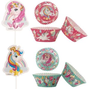 Košíčky na muffiny a zápich do torty s motívom Unicorn.