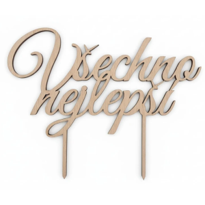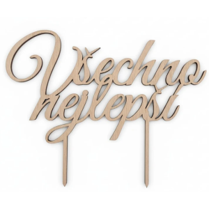 Štýlový drevený zápich „Všetko najlepšie“ s dĺžkou 15 cm dodá každej torte či dezertu osobný a elegantný dotyk.