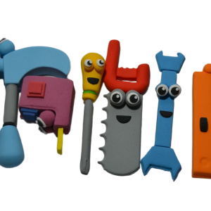 Ručne vyrábané detské náradie s roztomilými tváričkami premení každú tortu na hravý staveniskový svet malého majstra.