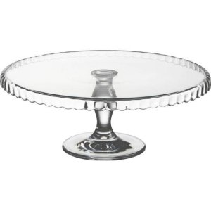 Podnos na nôžke s ozdobným okrajom – skvelý na servírovanie bábovky, muffinov, tort, zákuskov… Materiál: sklo .