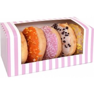 Elegantná krabička pre ľahké prenášanie donutov.
