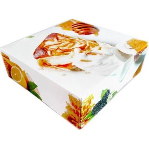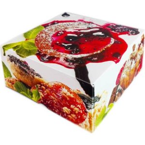 Škatuľa väčších rozmerov z kvalitného potlačeného papiera na torty, rolády, zákusky a ďalšie druhy cukrárskych výrobkov.