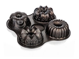 Forma 4 bábovky 14 cm, MAJESTIC Margarita, nepriľnavý povrch, liata. priemer bábovky: 14 cm rozmery celej formy: 33,5 x 33,5 cm Liata hliníková forma na pečenie na 4 malé bábovky s priemerom 14 cm, MAJESTIC Margarita …