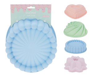 Forma na pečenie mix tvarov BÁBOVKA, SRDCE, KVETINA, ŠPIRÁLA, silikón. rozmery: - guľatá pr. 25 cm - srdce 25 cm - kvet pr. 24 cm - špirála pr. 24,5cm výška: 10 cm materiál: silikón mix pastelových …