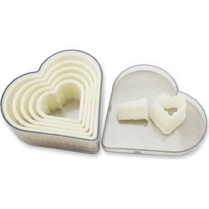 Sada vykrajovačov na sušienky a jedlé dekorácie v tvare srdca.