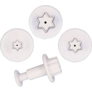 Súprava 3 ks plastových vykrajovačov rôznych rozmerov v tvare hviezdy.