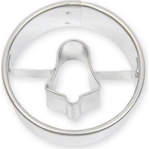 Vykrajovač na pečivo v tvare kolieska priemerom 4 cm a zvončekom uprostred.